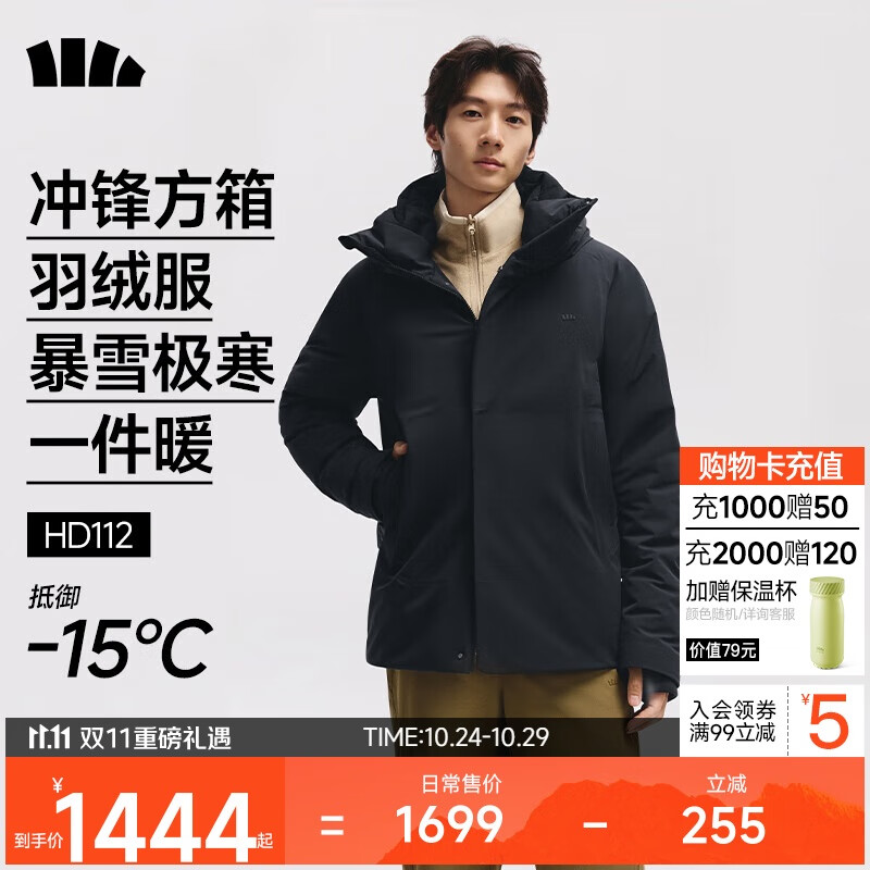 蕉下(beneunder)男士拒水羽绒服保暖户外防风防水可机洗连帽外套HD112漫暮黑2XL