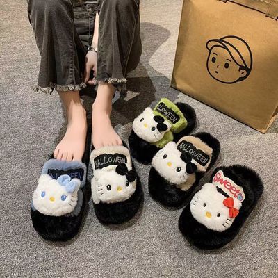 ins可爱kitty凯特猫毛毛拖鞋外穿2024秋冬季新款厚底增高棉拖鞋【5天内发货】