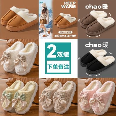 买一送一棉拖鞋女冬季2024新款室内家居情侣保暖毛绒加厚底拖鞋男