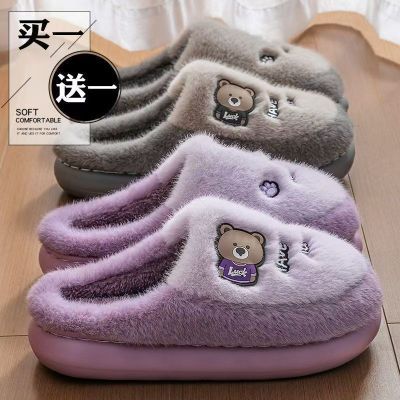买一送一棉拖鞋女秋冬季2025新款室内保暖可爱情侣防滑毛绒拖鞋男