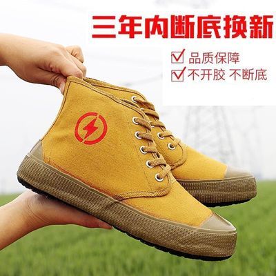 5kv 电工绝缘鞋男高帮防滑耐磨劳保鞋高压电力鞋女防静电黄胶球鞋