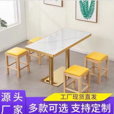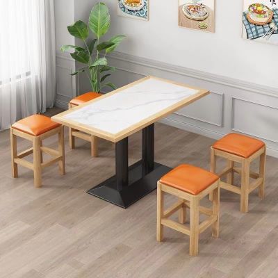 商用实木餐饮岩板餐桌小吃店奶茶面馆麻辣烫小吃汉堡餐桌椅组合