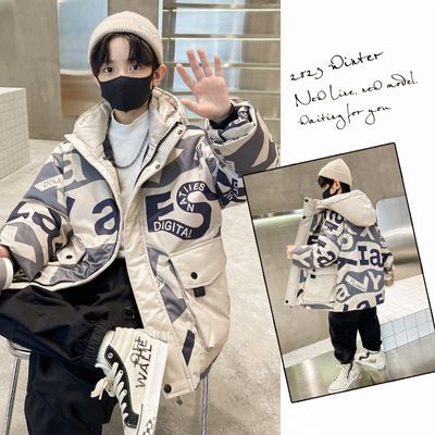 男童字母加绒外套秋冬2024新款棉服中大童冲锋衣派帅气加厚克服