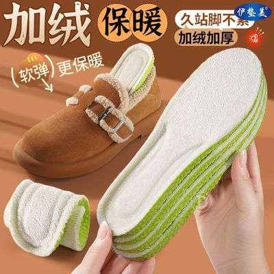 加绒鞋垫勃肯鞋保暖鞋垫女踩屎感羊羔绒加绒艾草除臭棉鞋垫秋冬