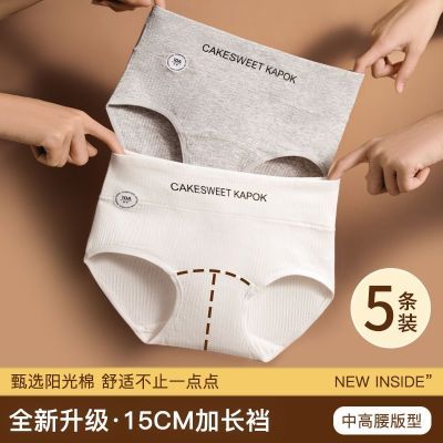 依诗猫5条欧若风中高腰内裤女生盒装加长棉裆10A抗菌收腹女士短裤