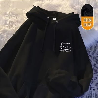高街卡通KT猫印花连帽卫衣青少年秋冬oversize宽松百搭上衣外套
