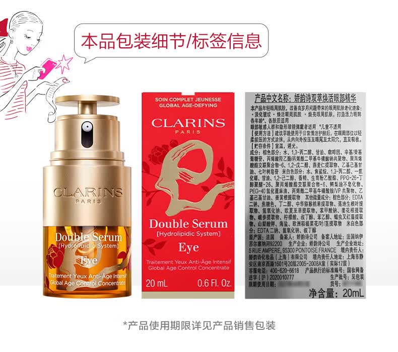 娇韵诗双萃精华眼霜20ml保湿提拉紧致淡眼纹护肤品礼盒生日礼物送女友