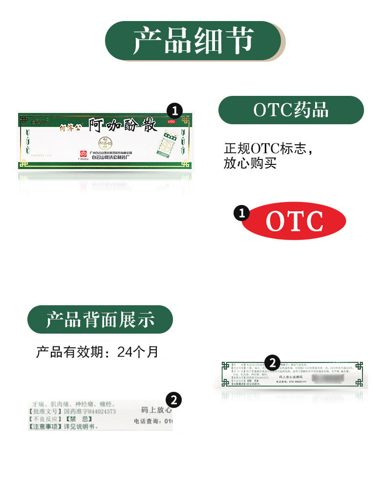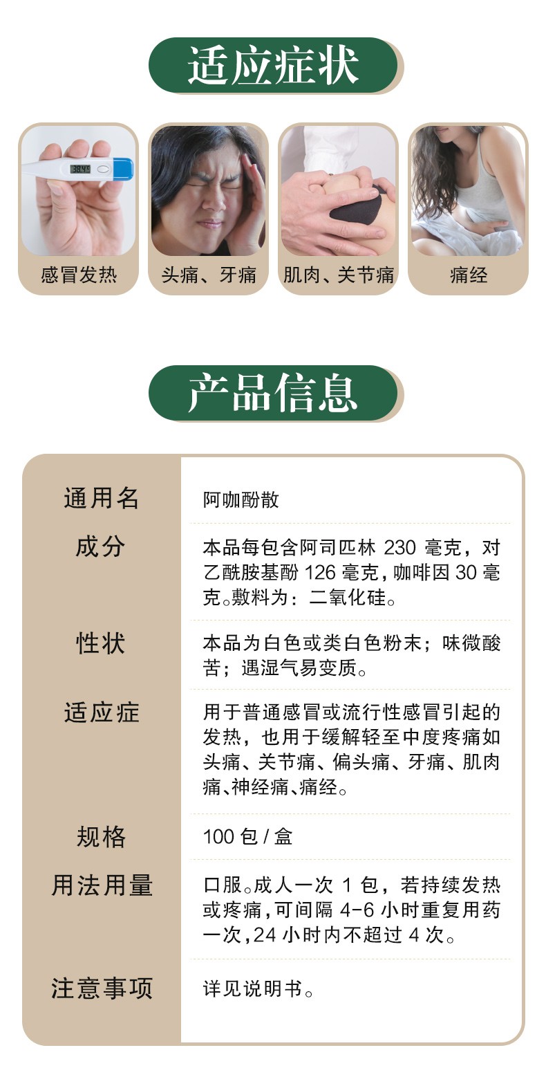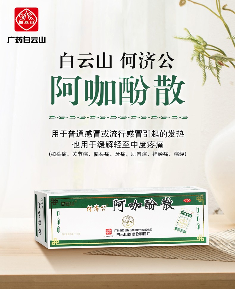 [白云山]阿咖酚散 100包 1盒装 100包 头痛粉头疼粉感冒发热 缓解头痛 关节痛 神经偏头痛 止痛退热散 100包