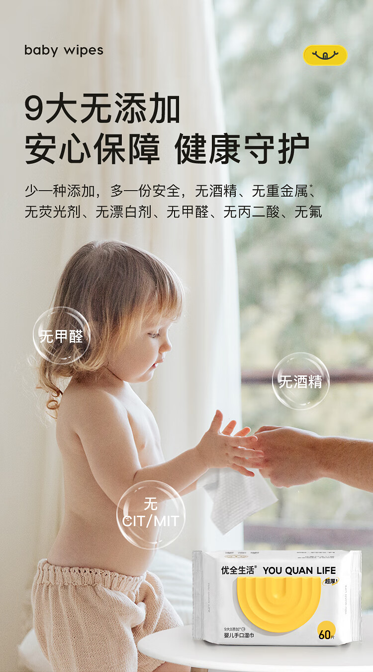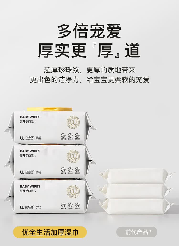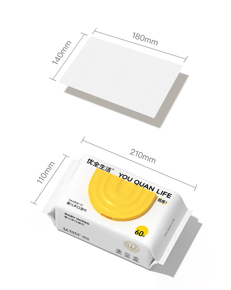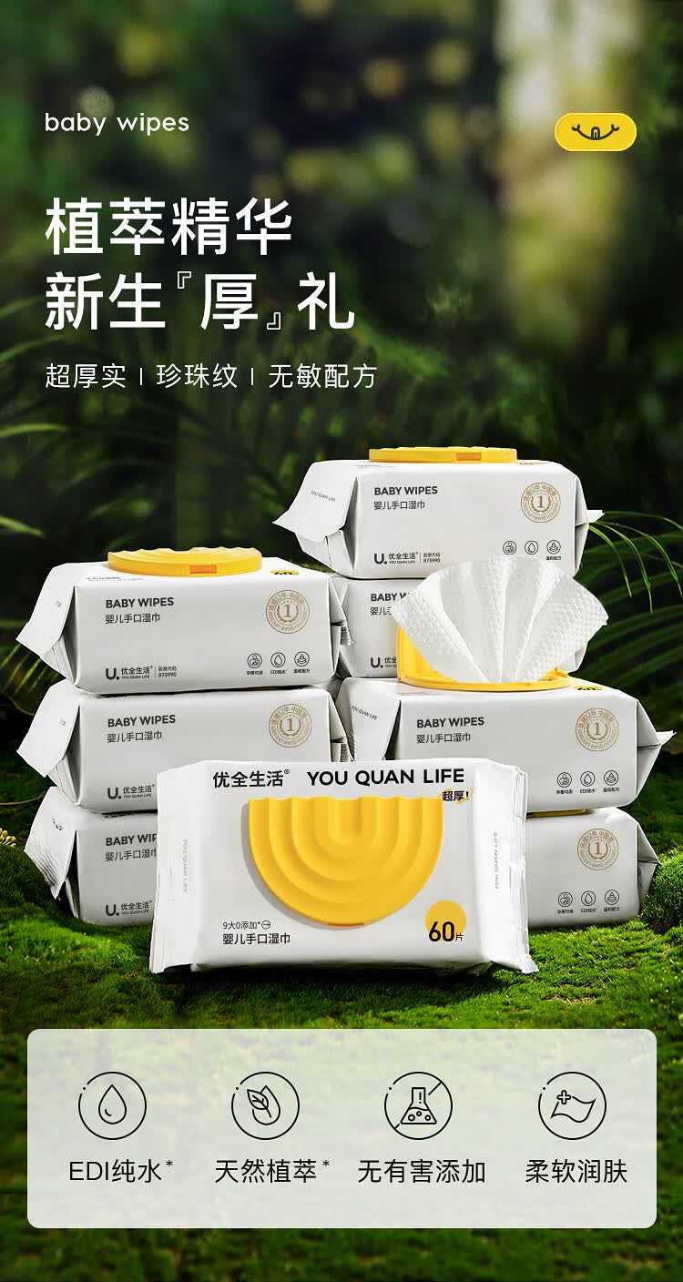 优全生活婴儿湿巾纸10包【超厚70g布】大包装新生幼宝宝孕婴童手口屁可用