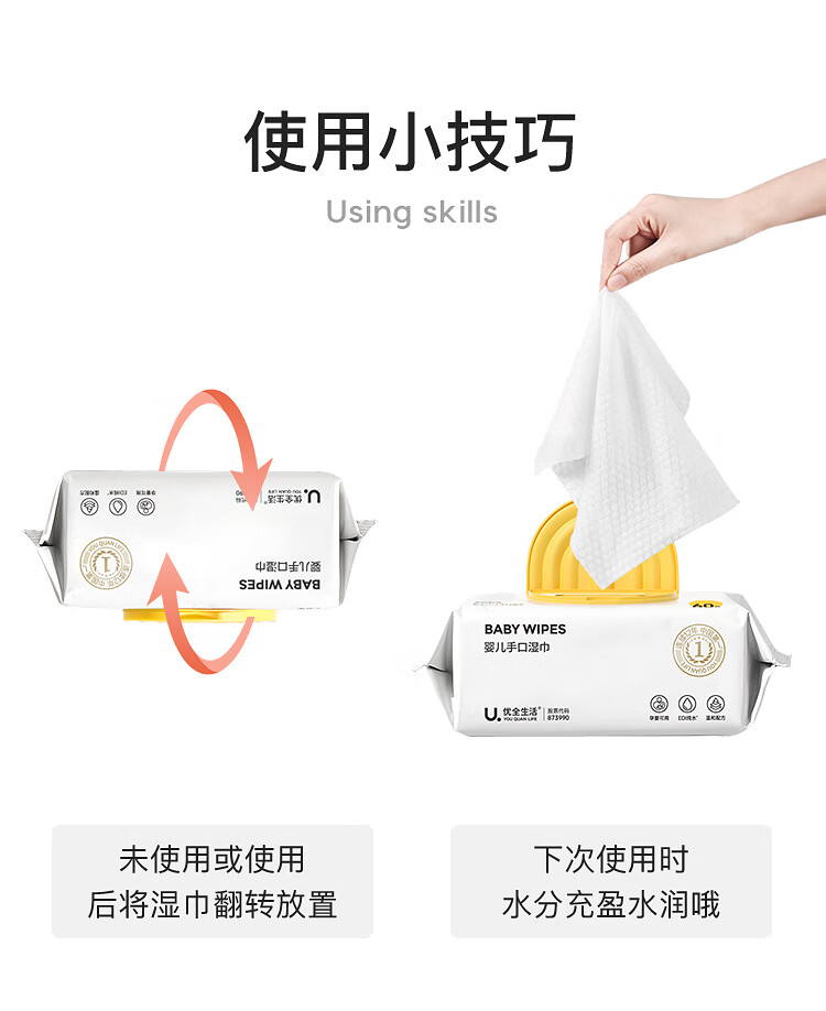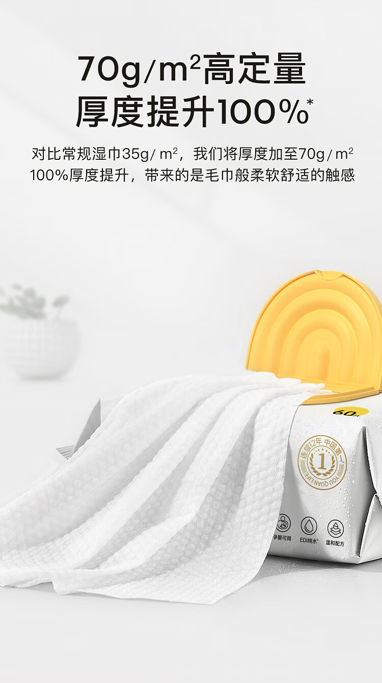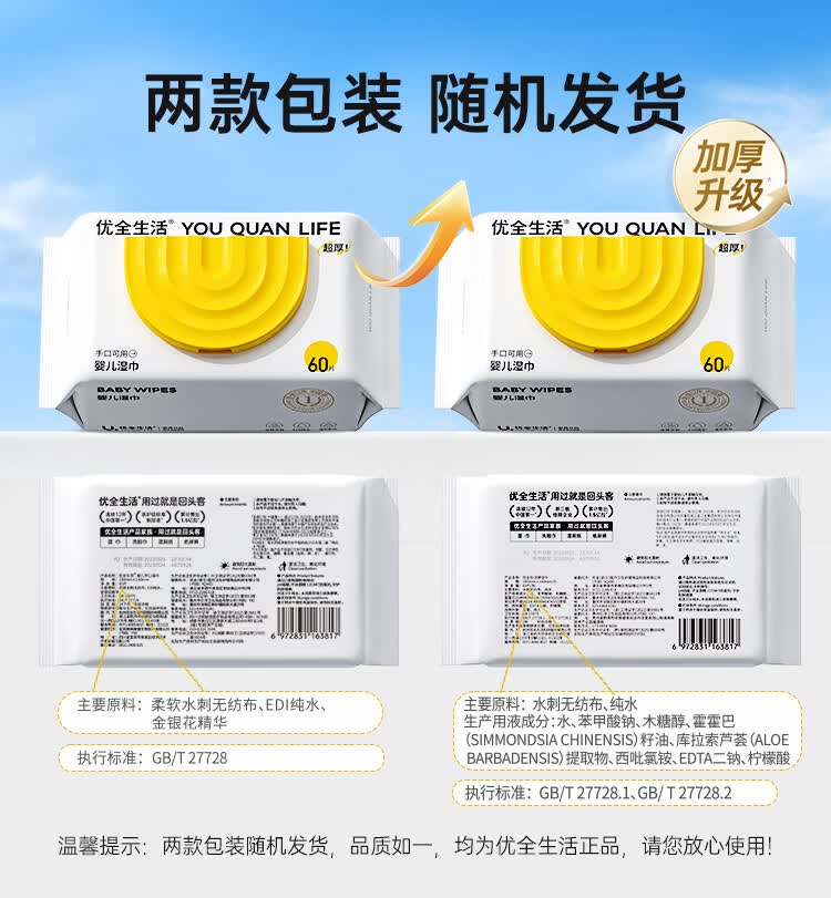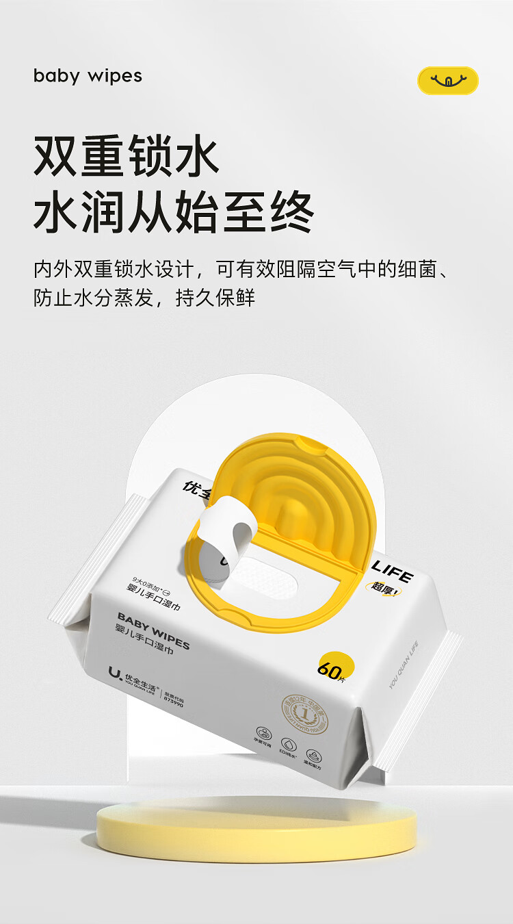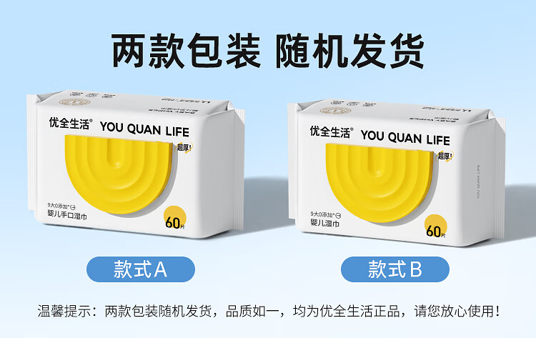 优全生活婴儿湿巾纸10包【超厚70g布】大包装新生幼宝宝孕婴童手口屁可用