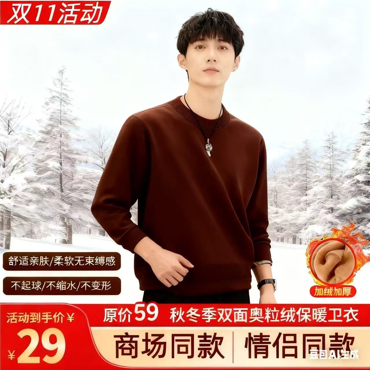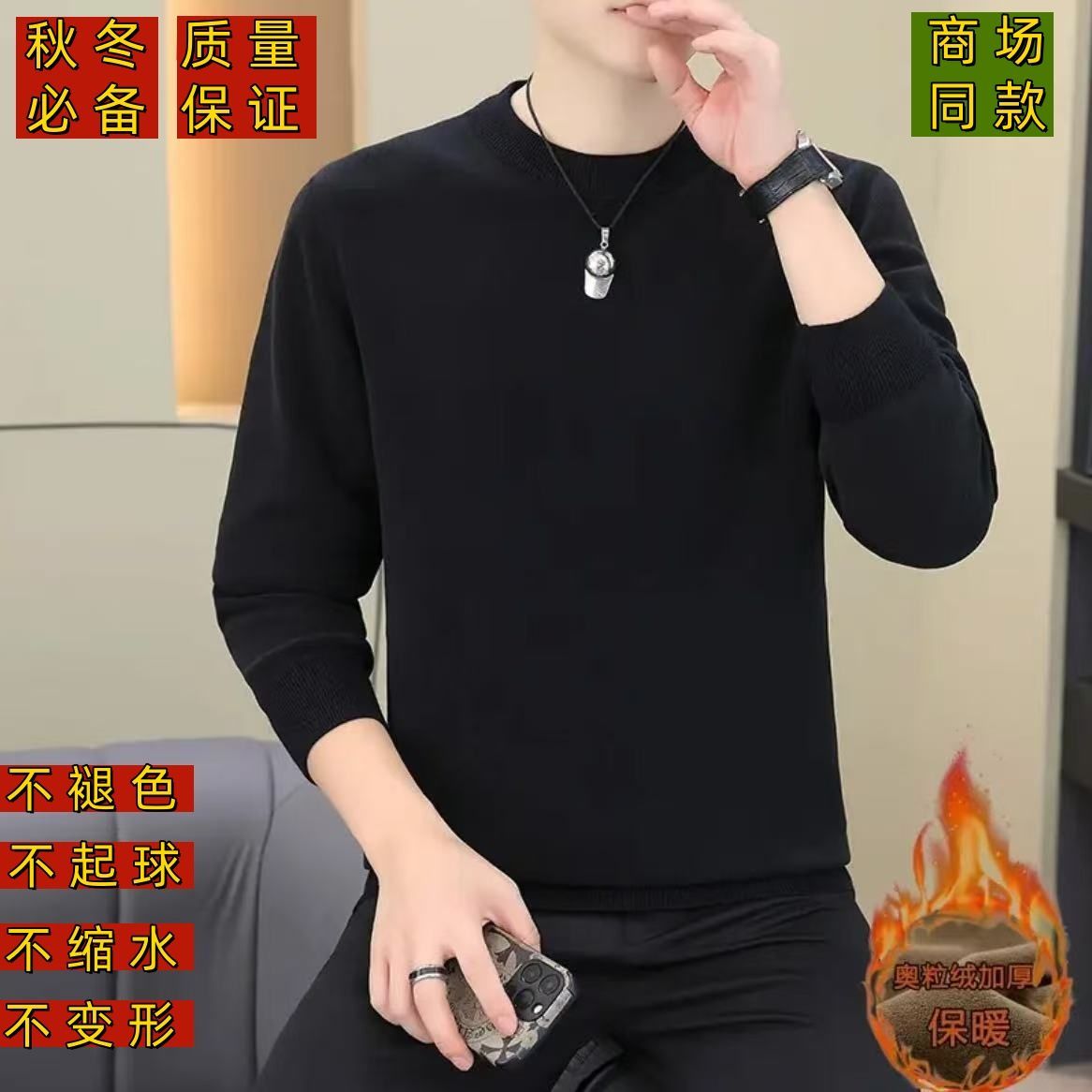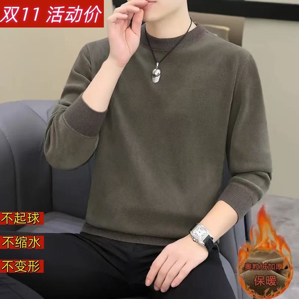 2025秋冬新款双面加绒奥粒绒卫衣 休闲保暖圆领打底衫