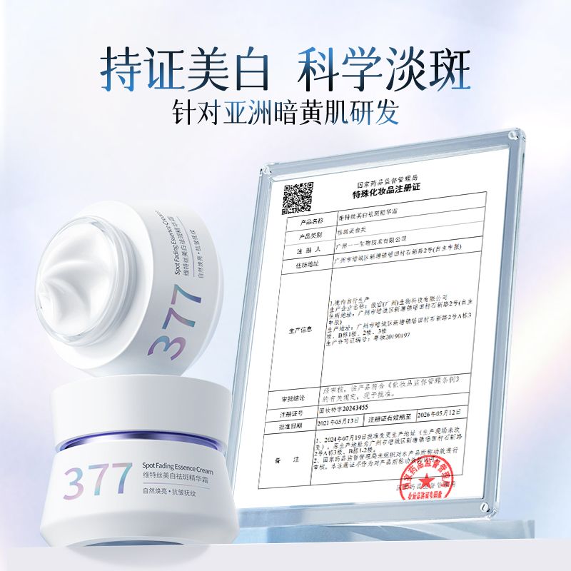 清北研发维特丝377美白面霜保湿补水祛斑提亮肤色抗糖氧化去黄女
