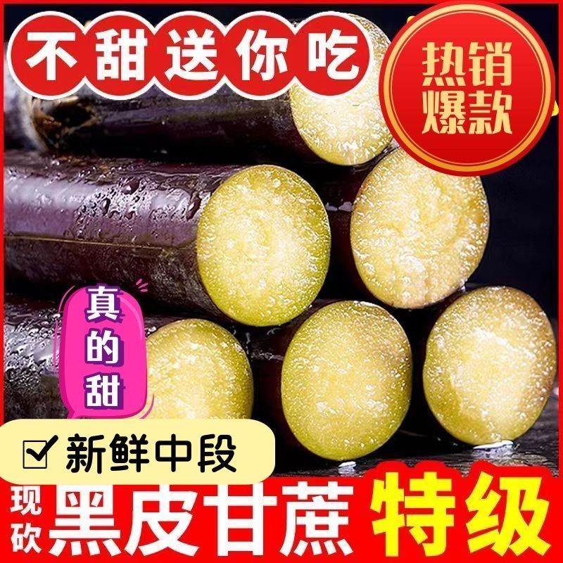 爆甜多汁黑皮甘蔗中段果蔗广东省韶关市脆甜适香包邮整箱