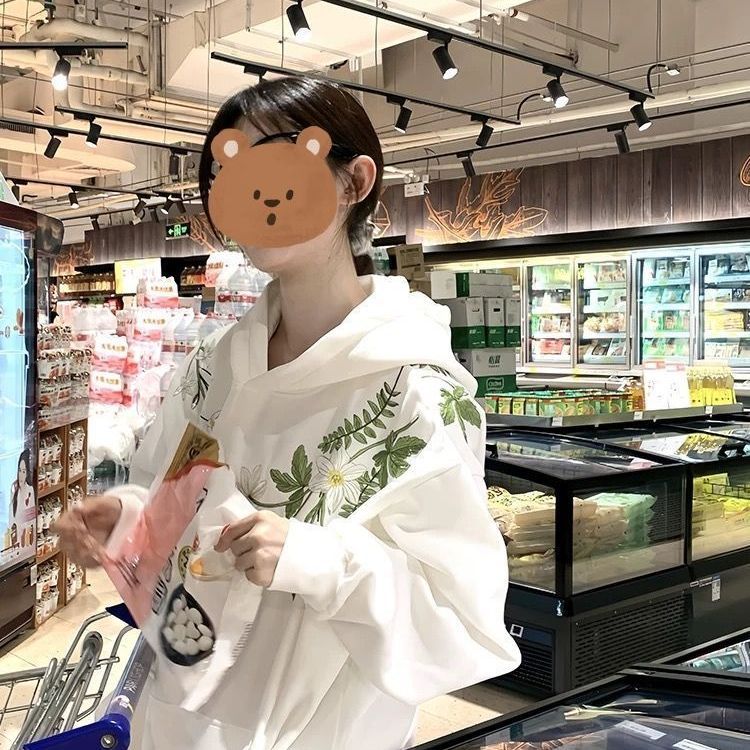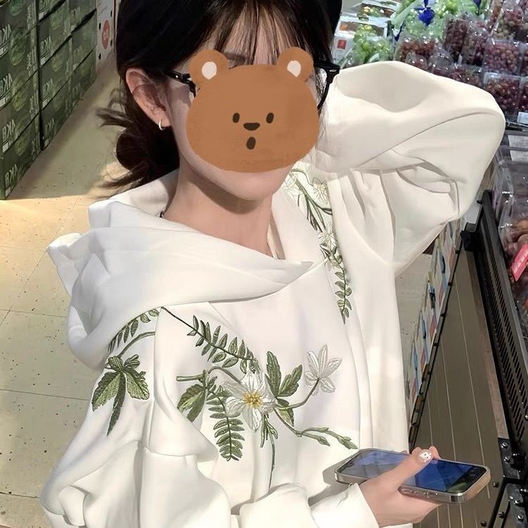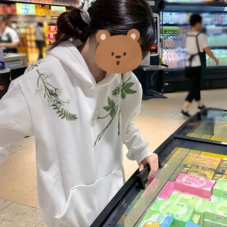 反季清仓女装~加绒加厚卫衣女连帽秋冬款宽松百搭国潮流花卉印花