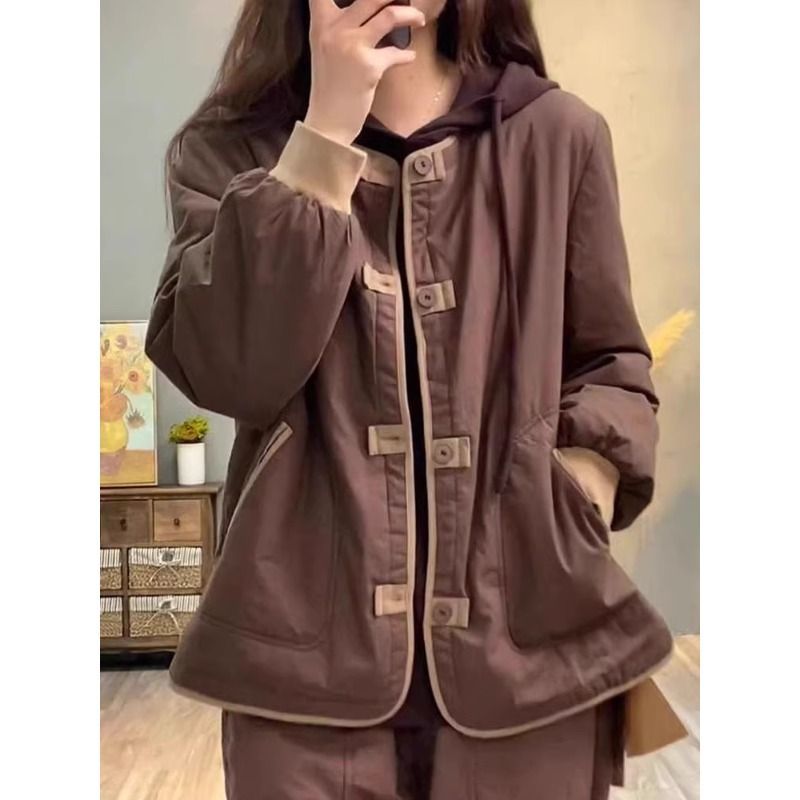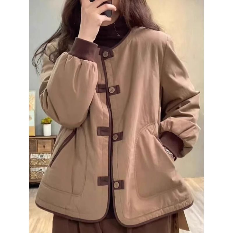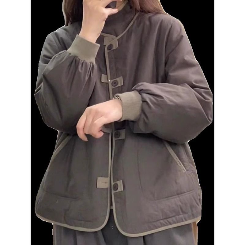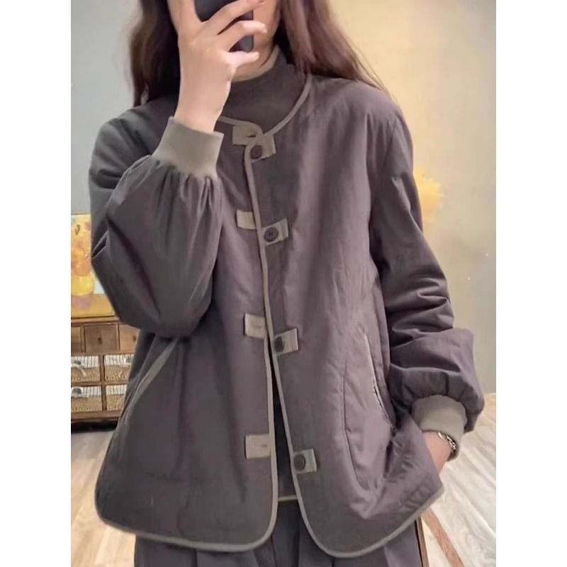 大牌剪标品牌轻薄夹棉外套女冬短款休闲撞色盘扣加厚棉服保暖棉衣【15天内发货】