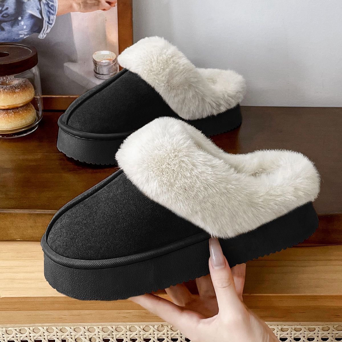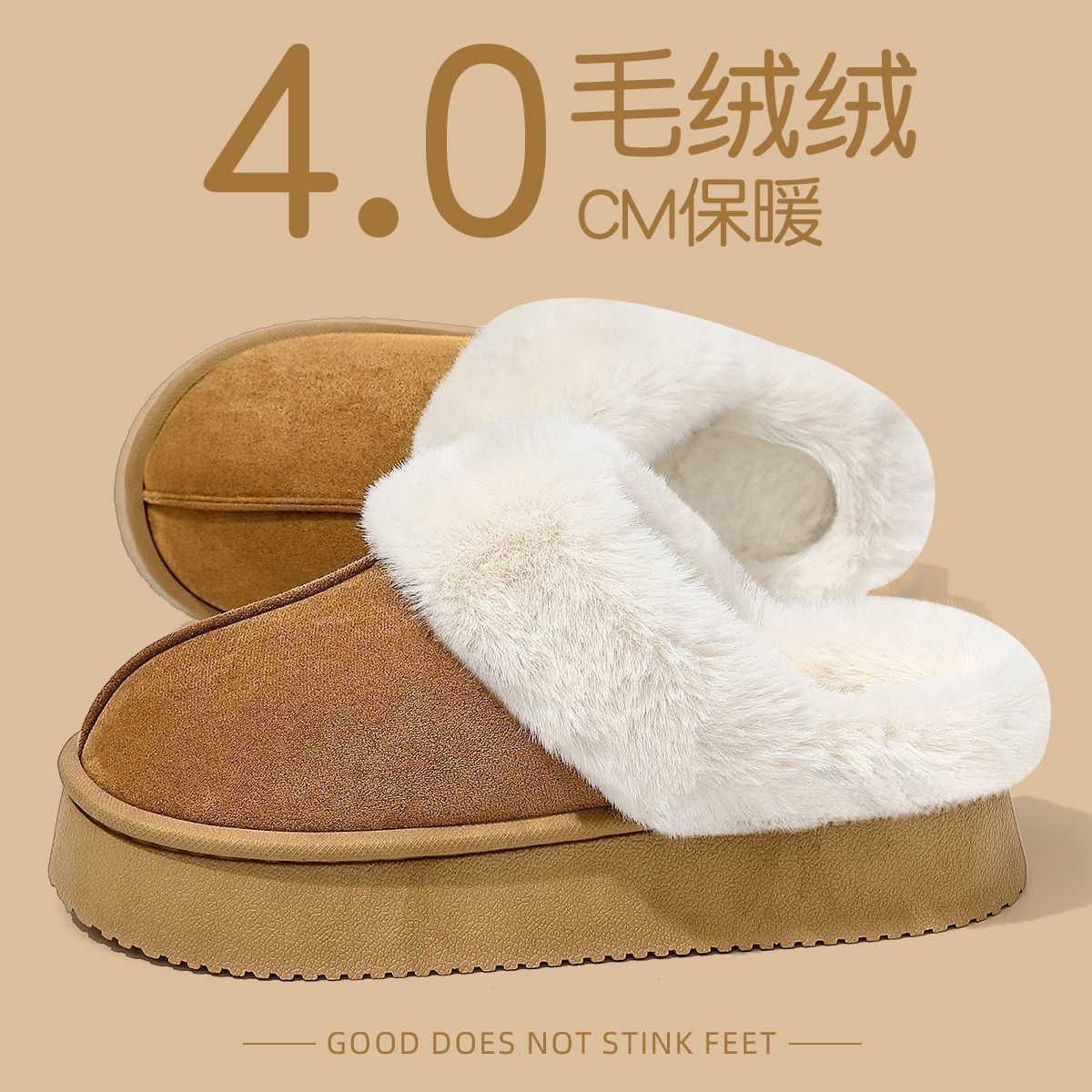 4.5CM厚度勃肯棉拖鞋女款2025新款秋冬季室内家居防滑毛绒增高