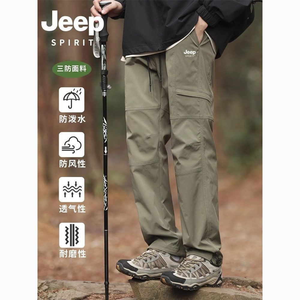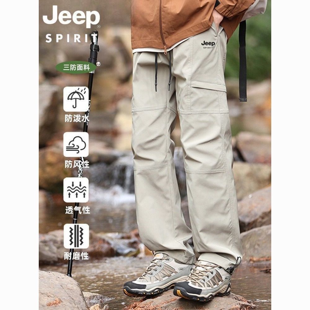 JEEP正品冲锋裤子男款秋季工装2024新款户外运动耐磨登山防水长裤