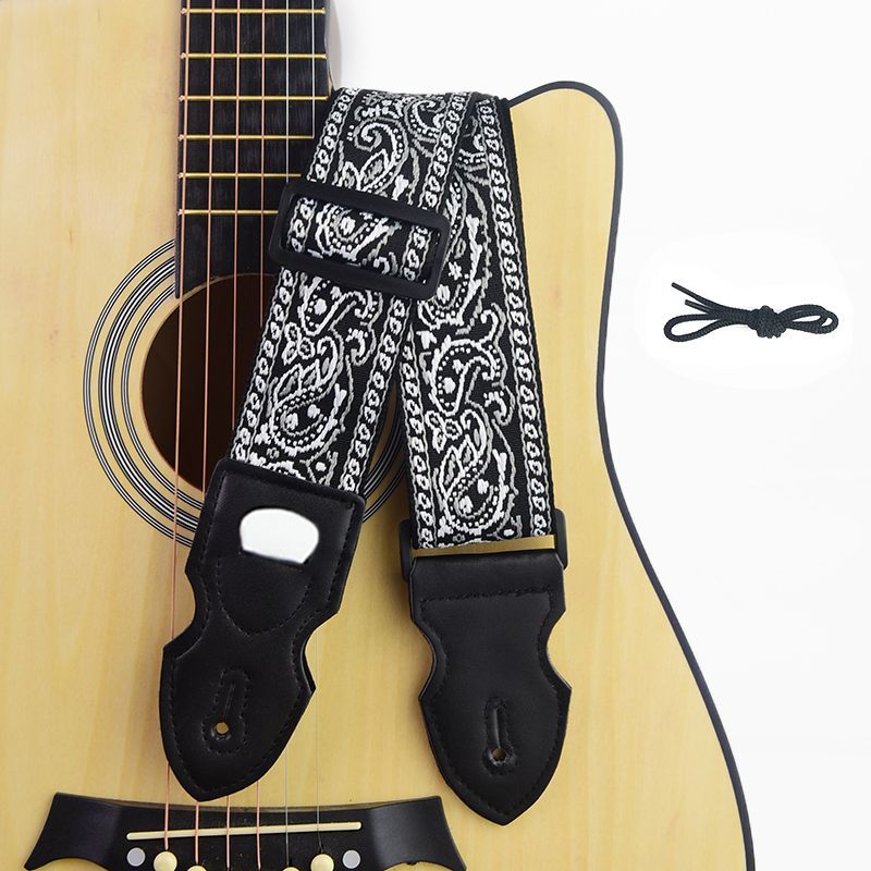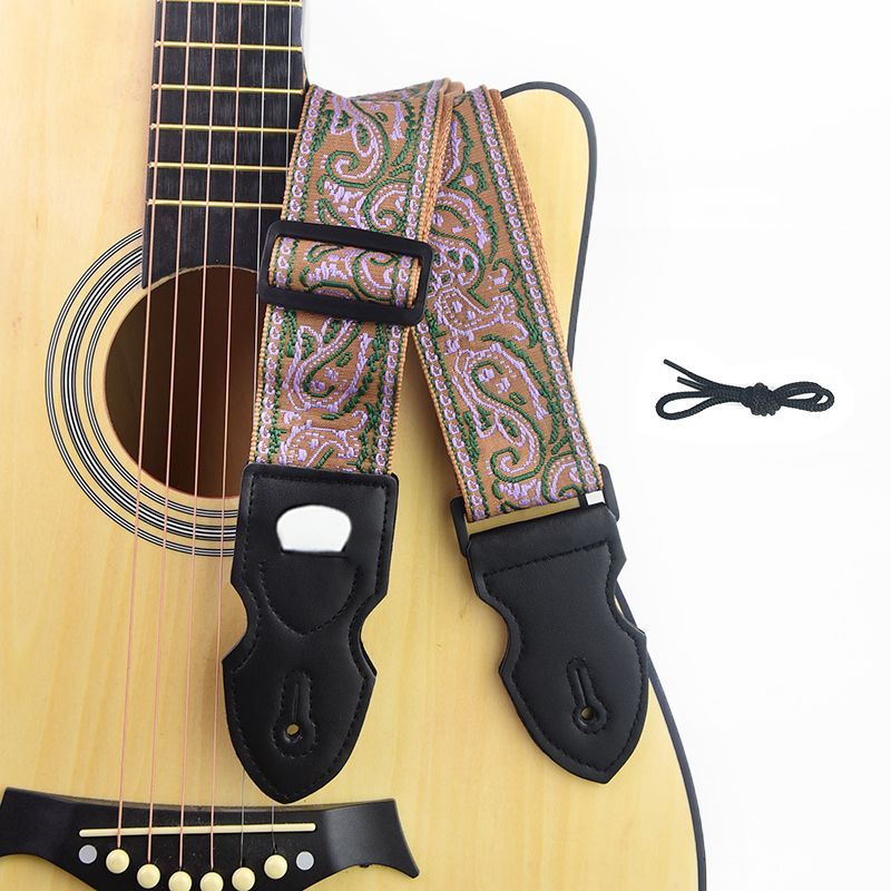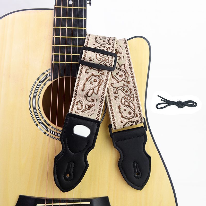 加厚加宽刺绣吉他背带波西米亚复古风可插拨片美式朋克可调节背带