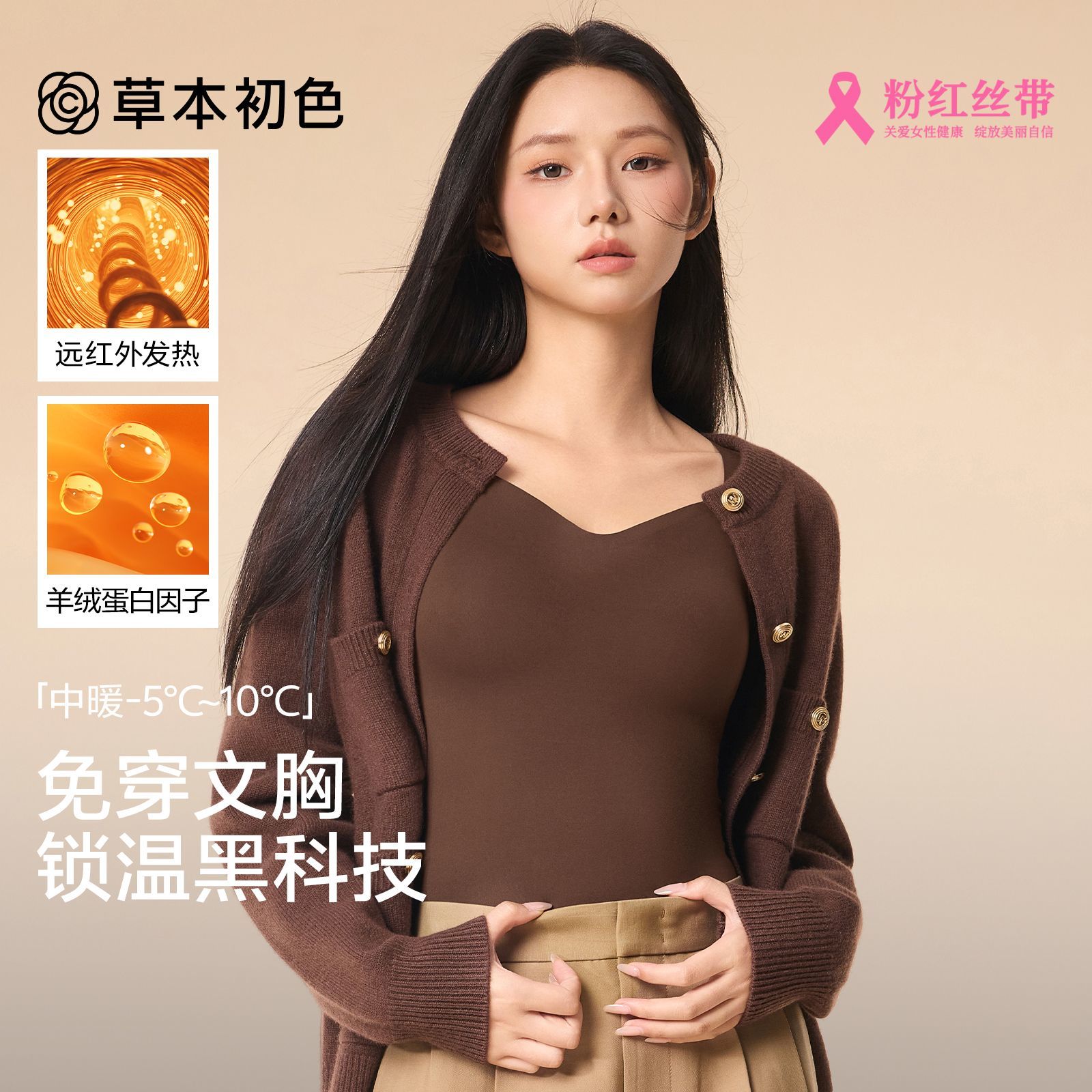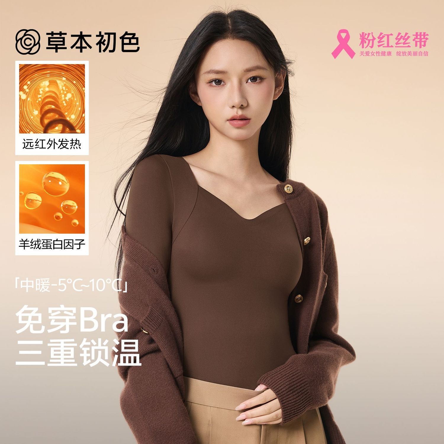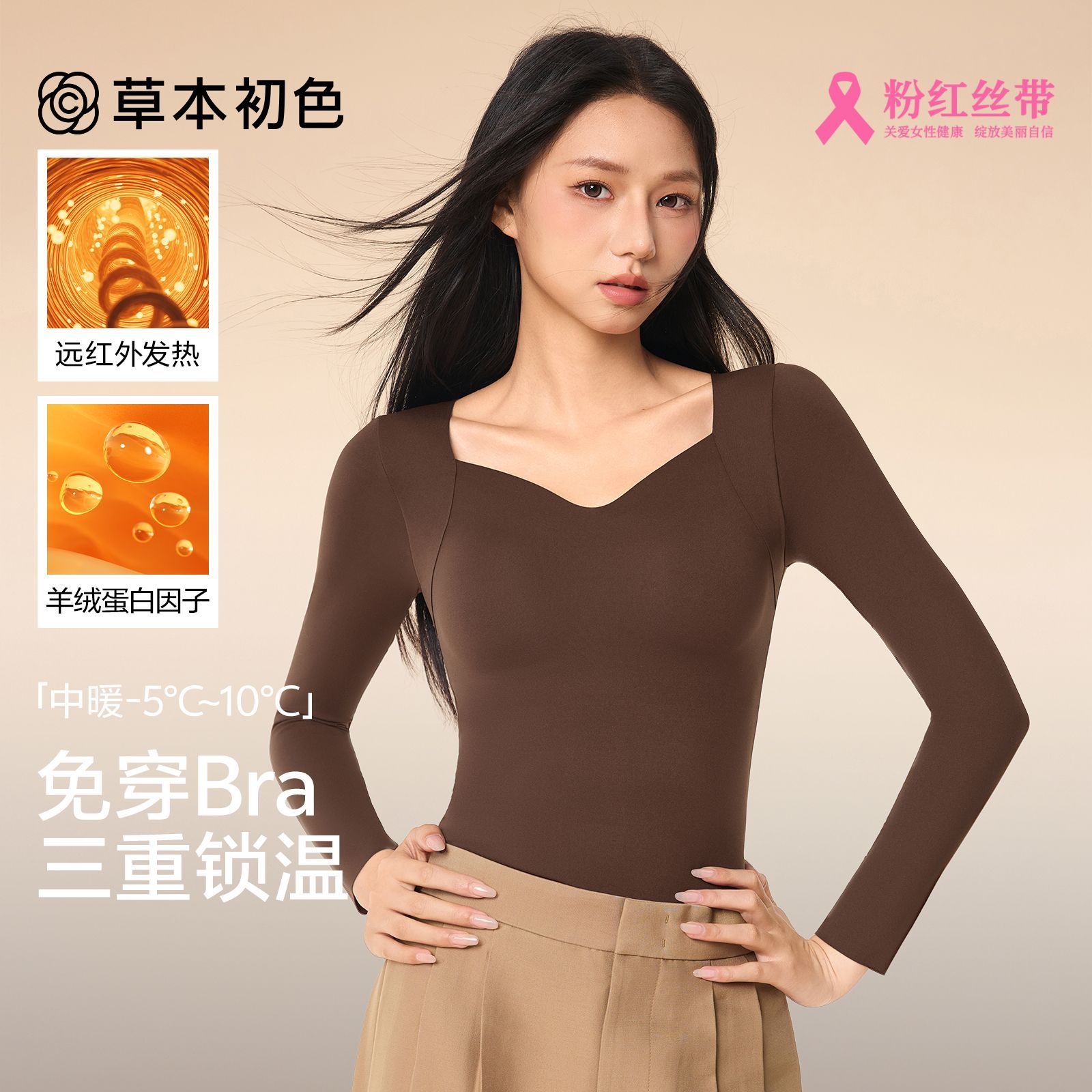 草本初色舒适无痕保暖内衣高弹打底抗静电女士贴身保暖上衣肌底衣