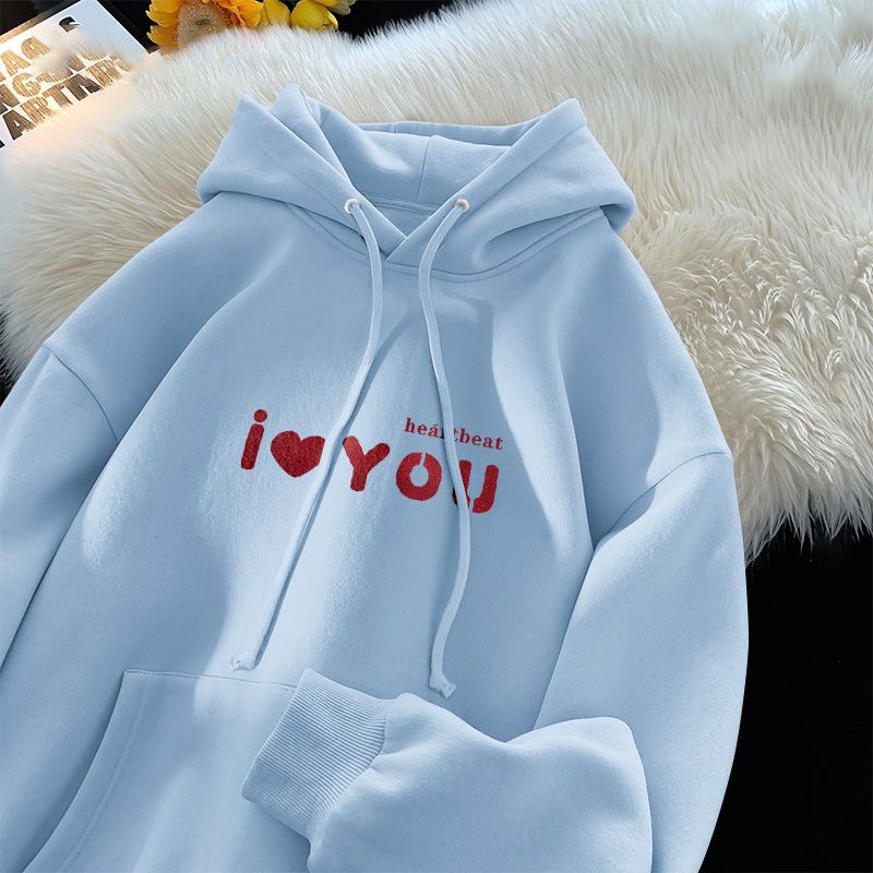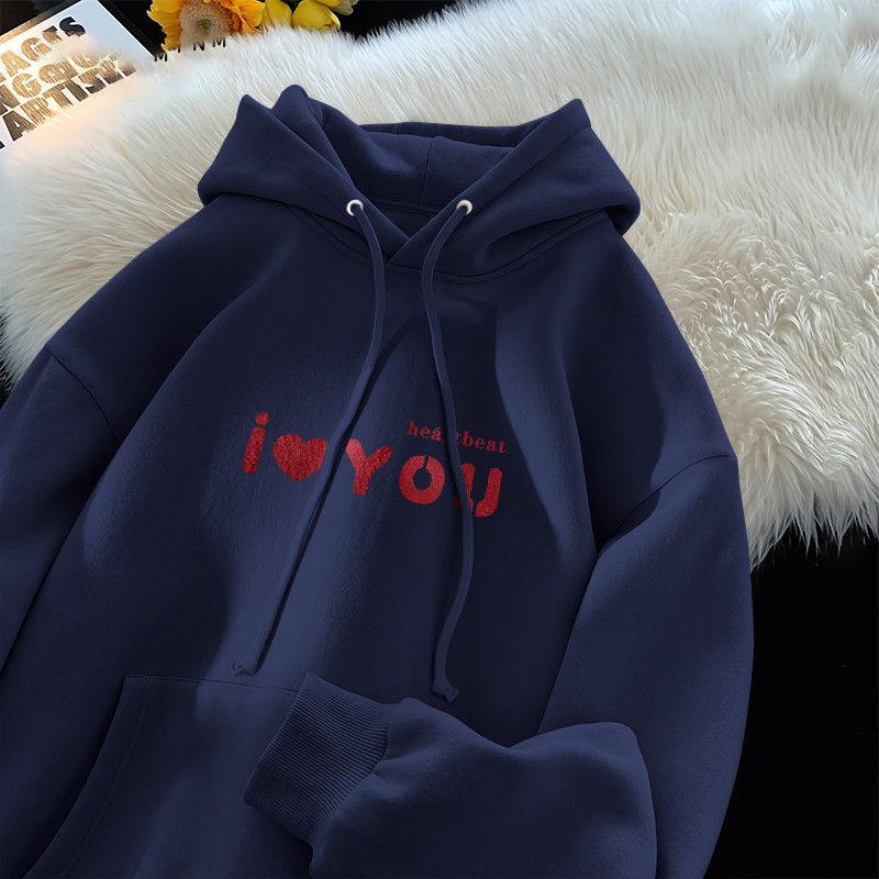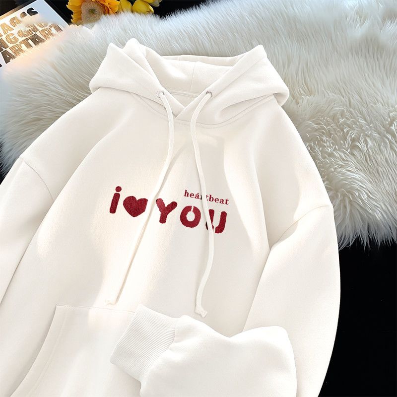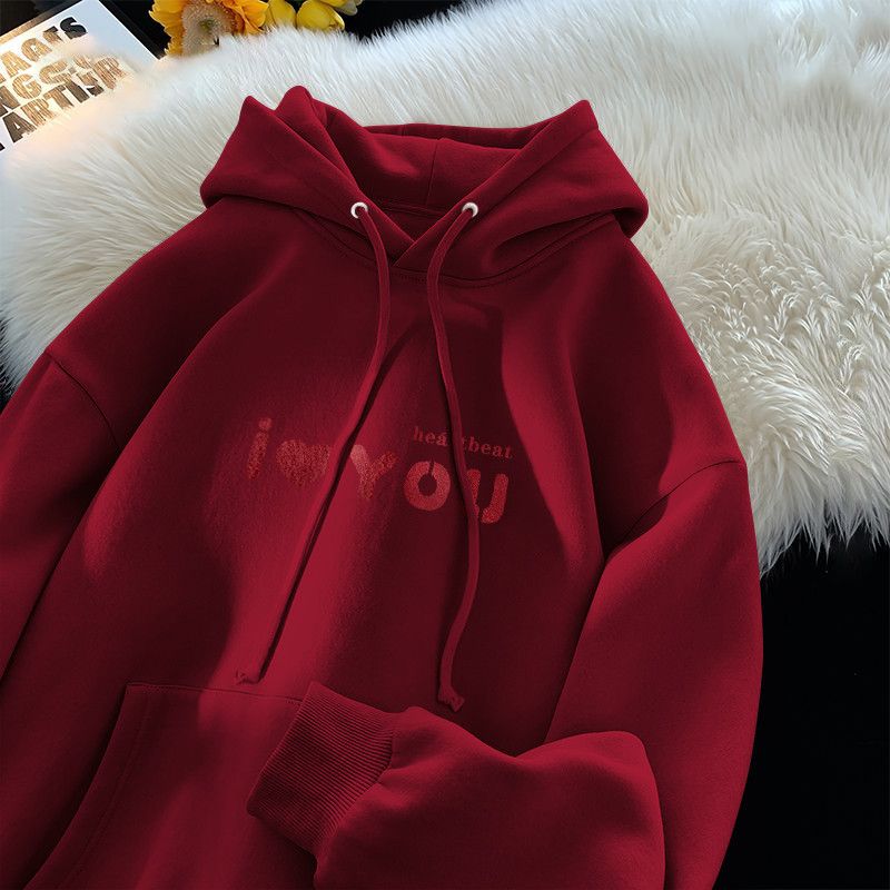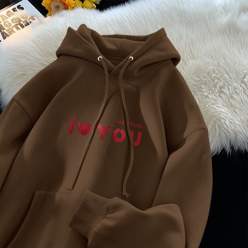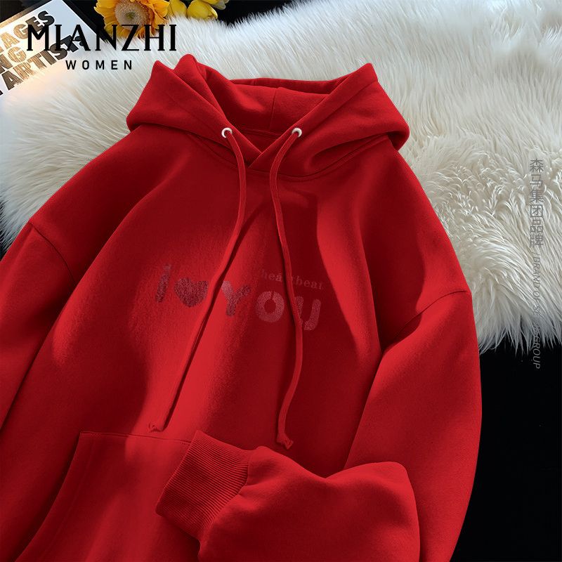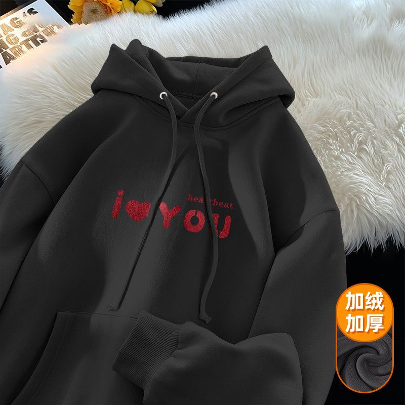 100%不起球连帽卫衣女秋冬新款小众简约上衣加绒百搭甜美外套上衣