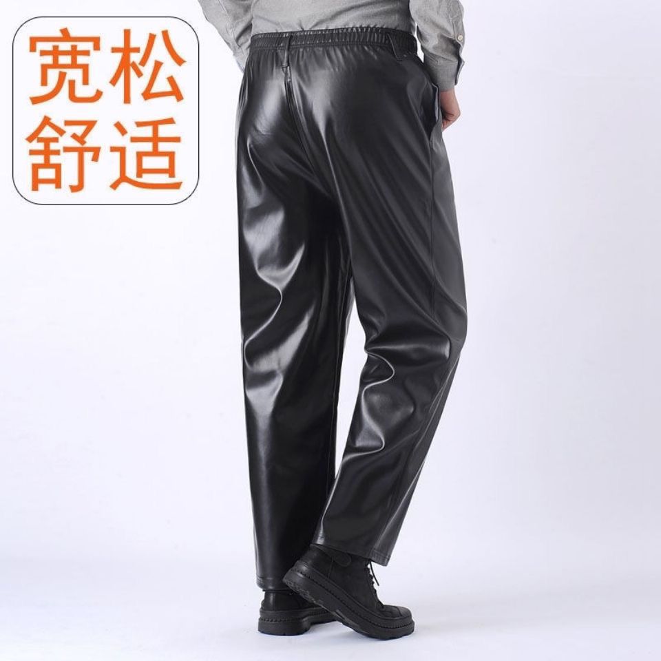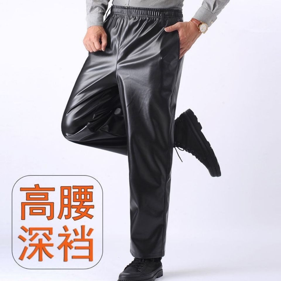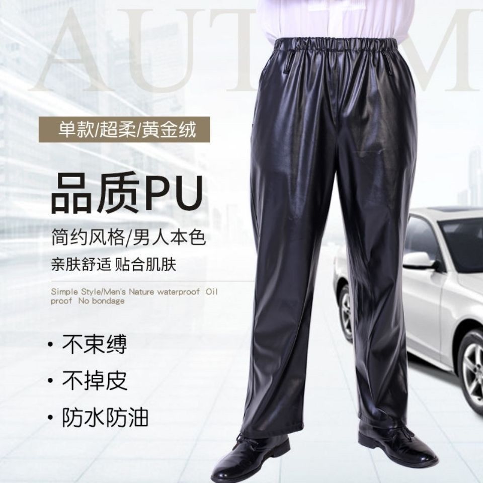 松紧腰皮裤中老年男士皮裤防水防油防风耐磨PU工作裤春秋款