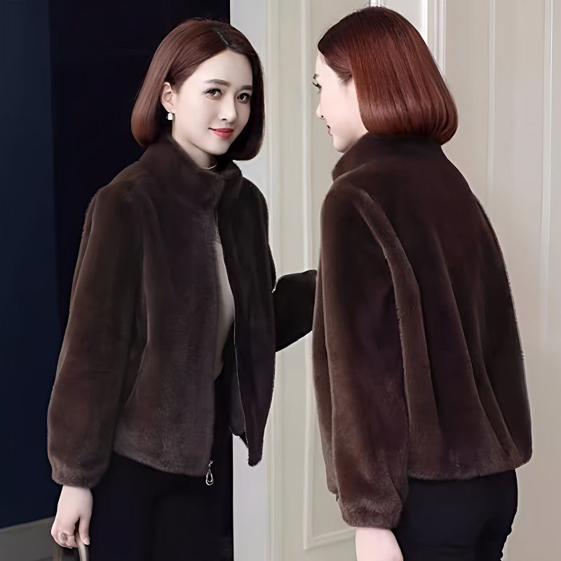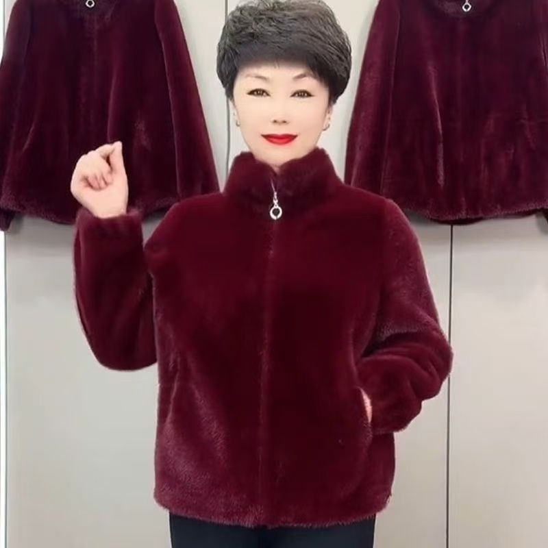 年轻妈妈冬装洋气立领短款皮草外套中老年女秋冬保暖貂绒百搭上衣