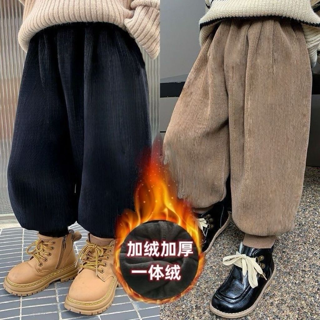 男童秋冬裤子2024冬装新款儿童长裤宝宝一体绒裤儿童时尚休闲裤潮