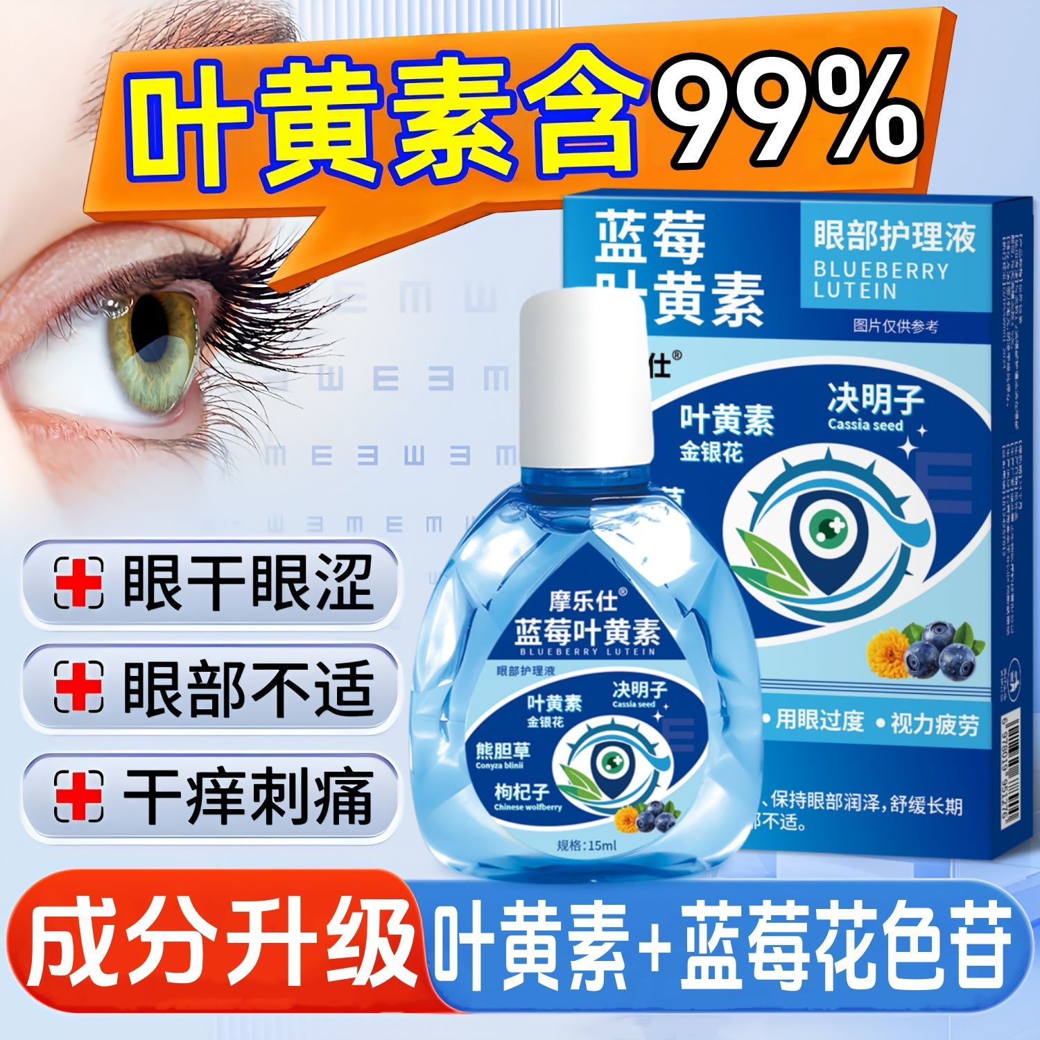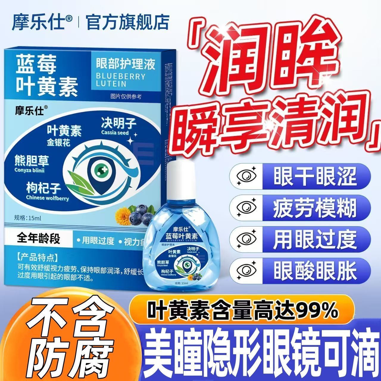 【官方】正品滴眼液叶黄素眼药水美瞳隐形眼镜护眼干涩红肿血丝