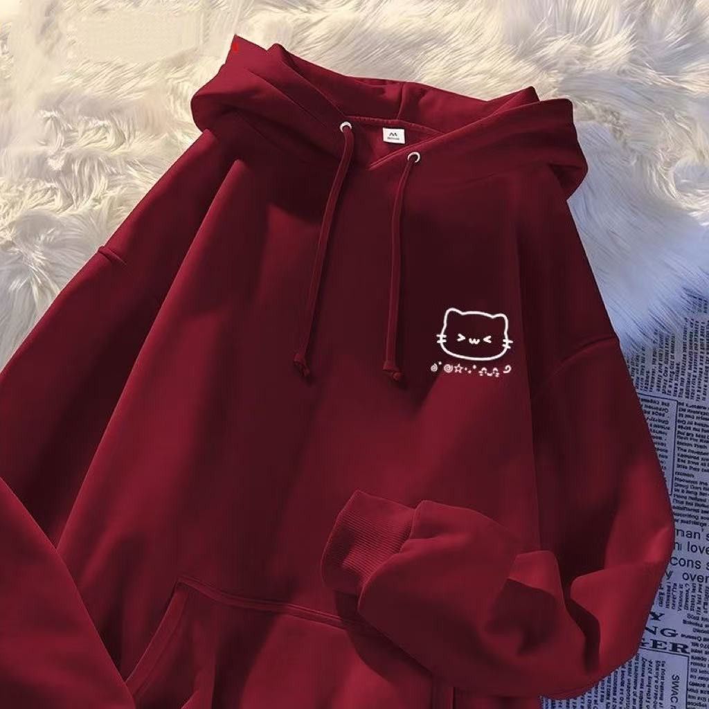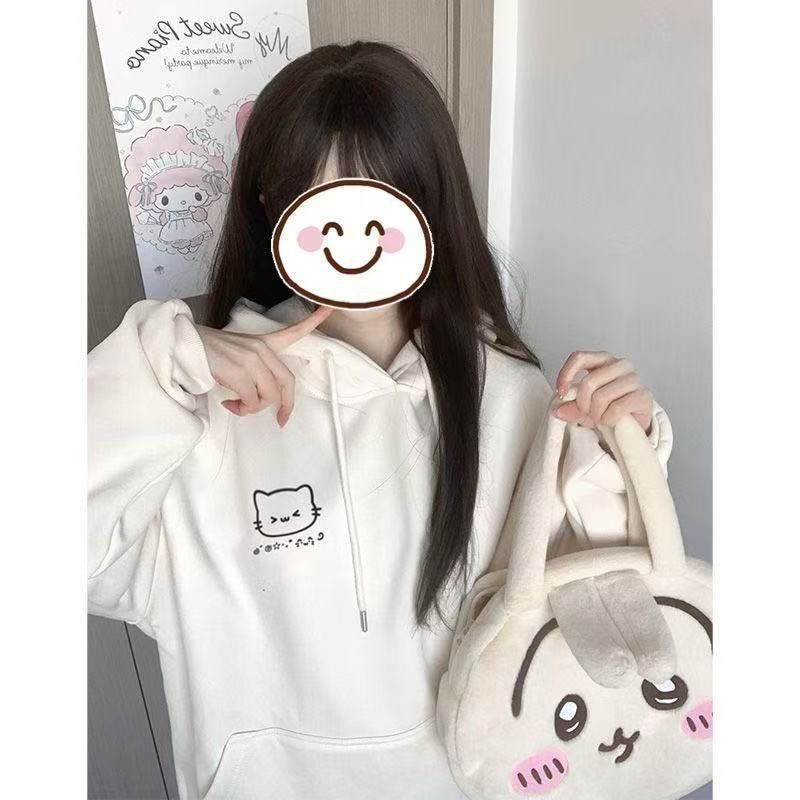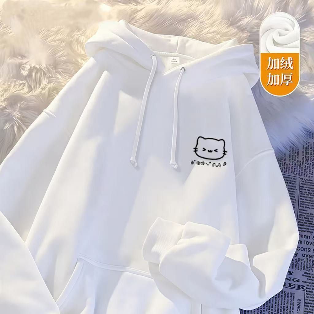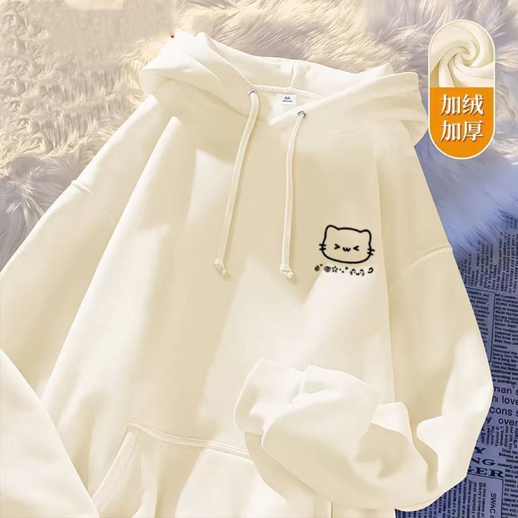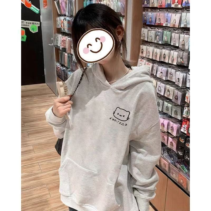高街卡通KT猫印花连帽卫衣青少年秋冬oversize宽松百搭上衣外套