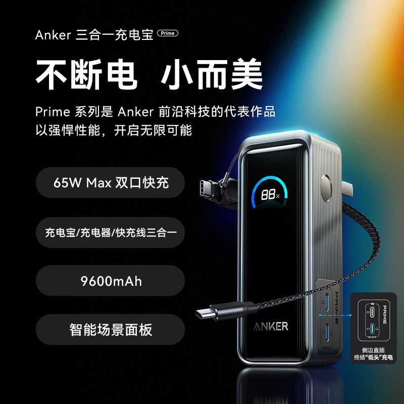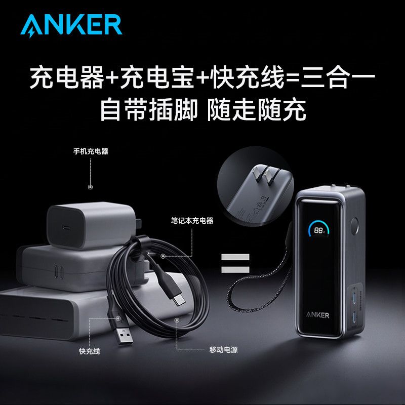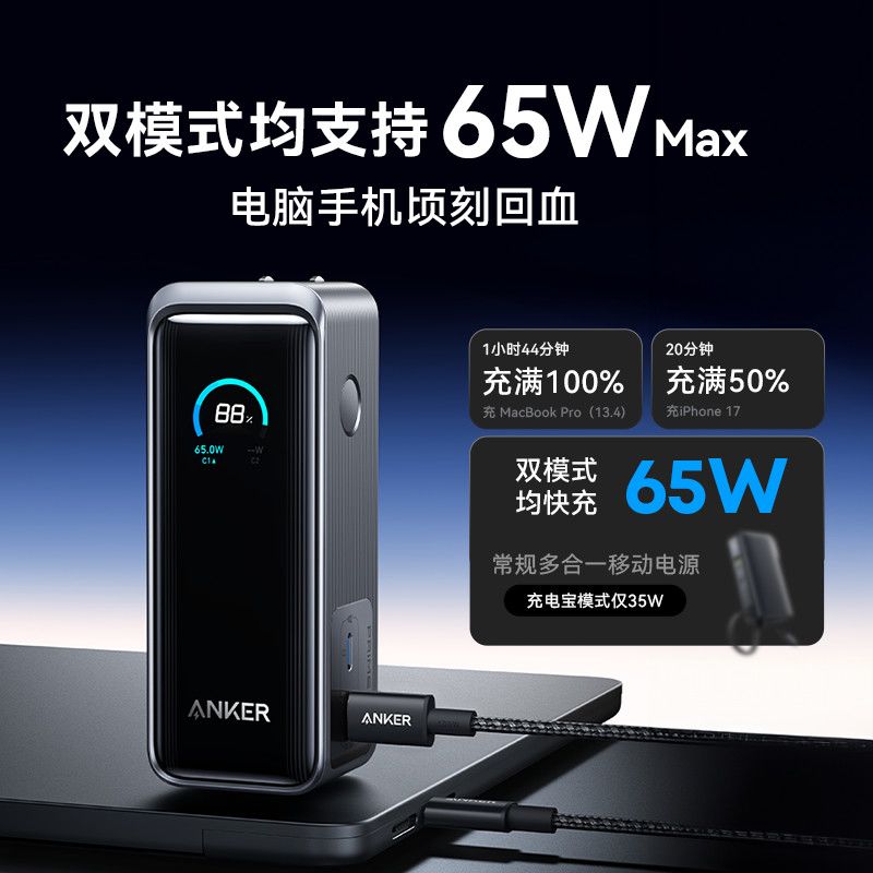 Anker安克65W快充10000毫安充电宝大容量快充迷你小巧便携笔记本