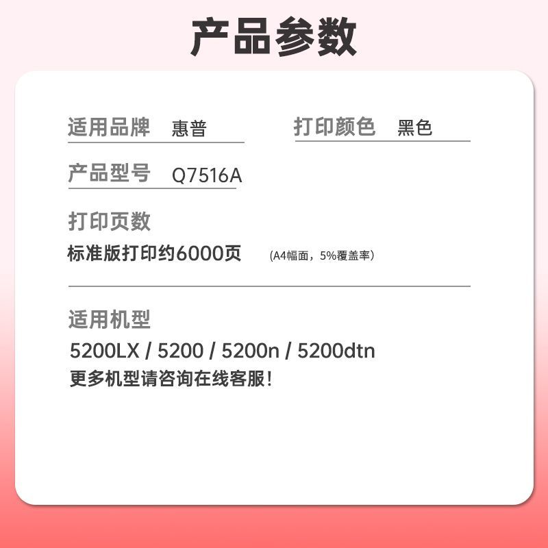 适用惠普5200LX HP5200碳粉5200n 5200dtn墨粉Q7516A