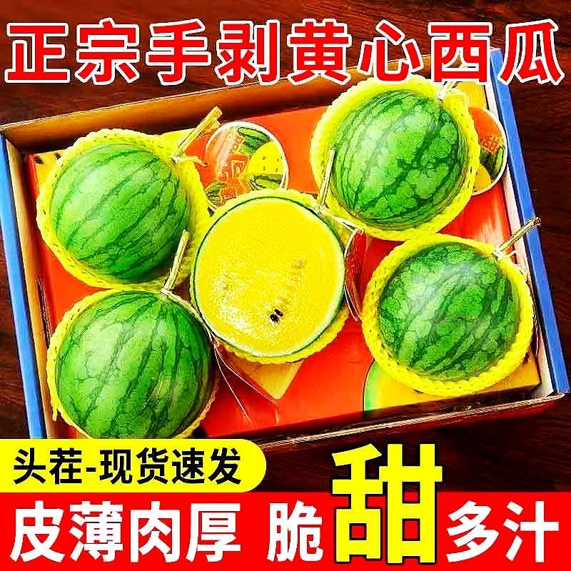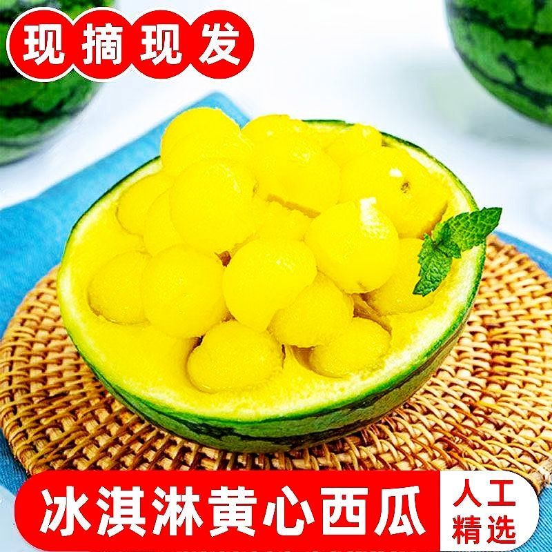 现摘特小凤黄心冰淇淋皮薄西瓜应季新鲜黄瓤西瓜孕妇水果脆甜多汁