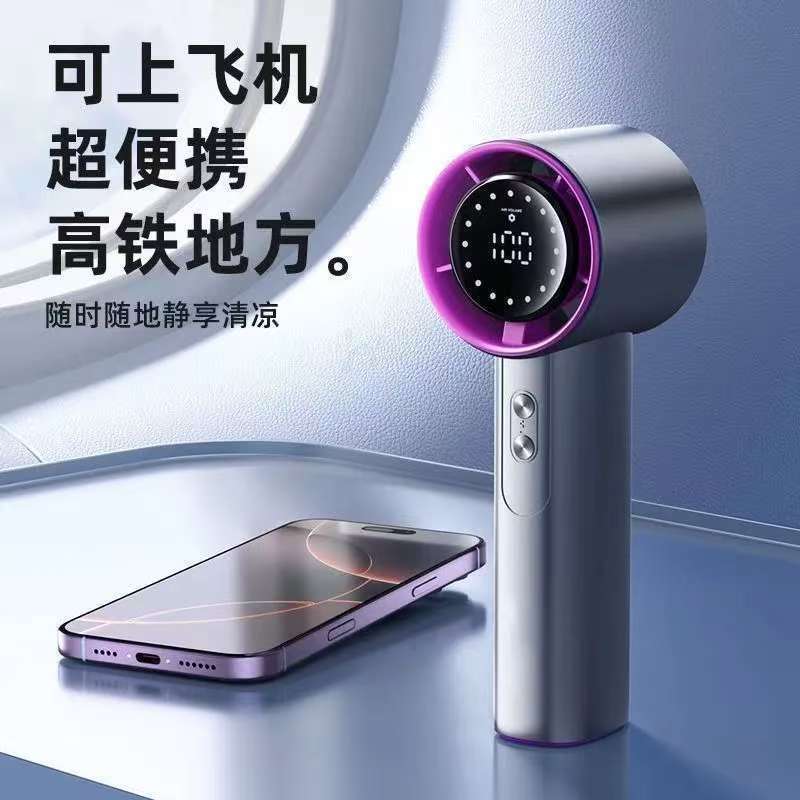 户外高速手持涡轮暴力小风扇充电100档无极调速智能数显无刷电机