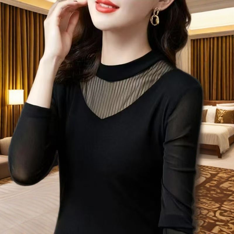 新款打底衫百搭气质显瘦拼接黑色T恤女士时尚上衣蕾丝打底衫