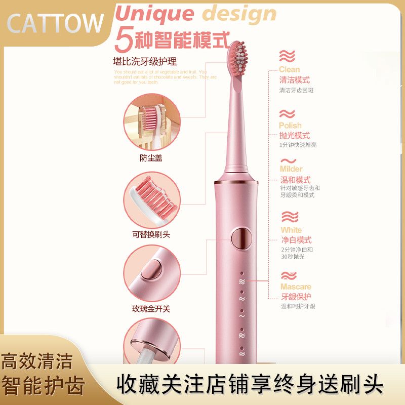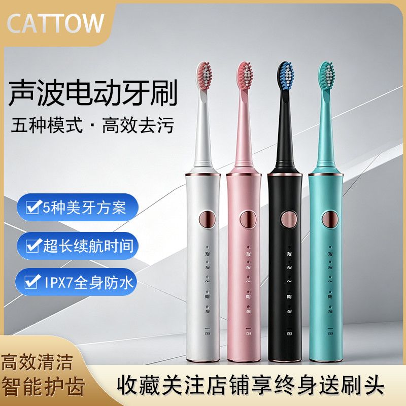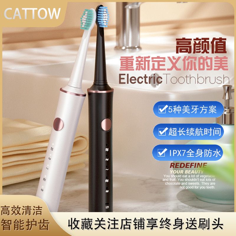 Cattow声波自动电动牙刷成人家用智能水洗充电学生青少年情侣美白