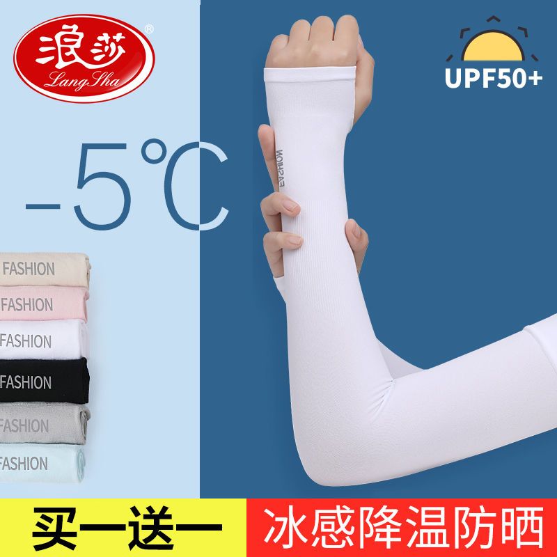 浪莎冰袖防晒袖套女夏季防紫外线冰丝手臂套袖手套男开车手袖透气