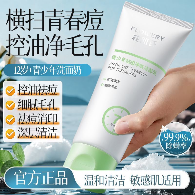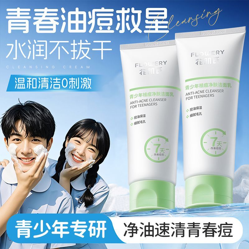 青少年氨基酸祛痘洗面奶控油祛痘去黑头粉刺学生补水保湿洁面乳