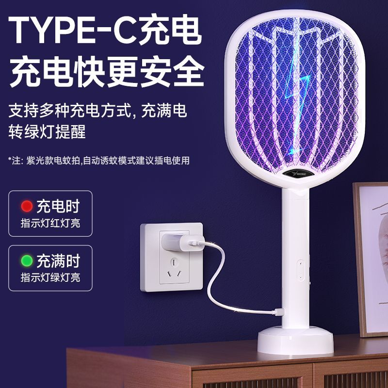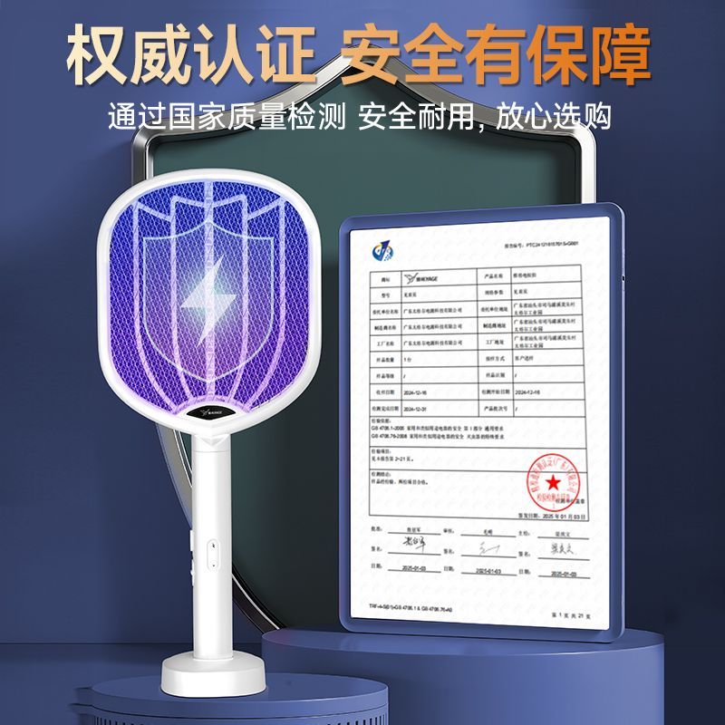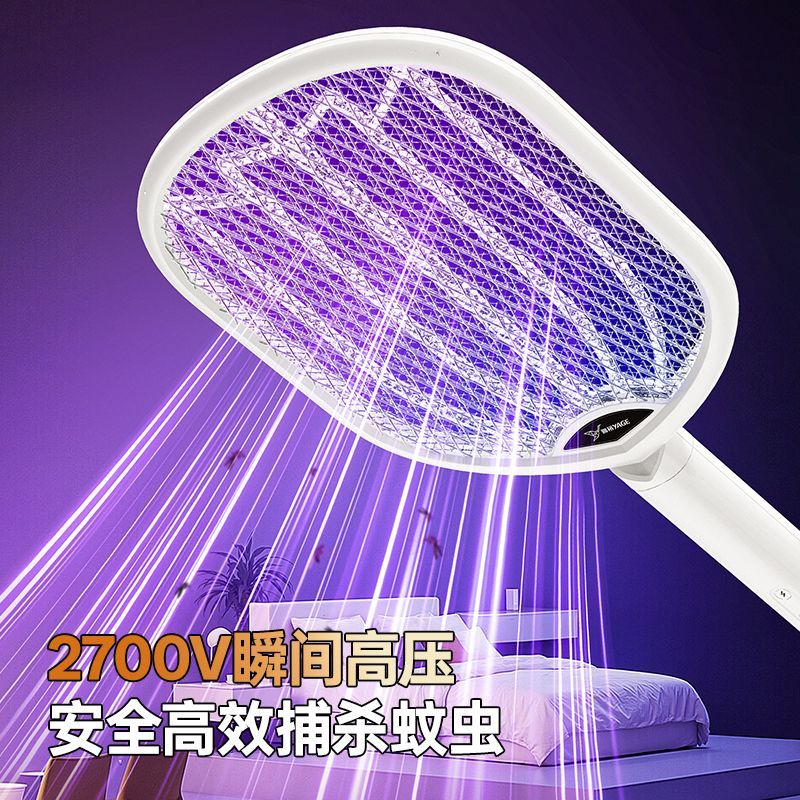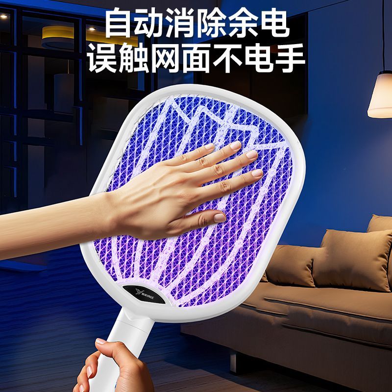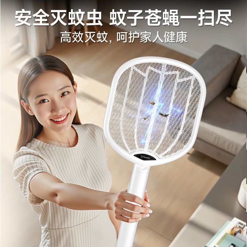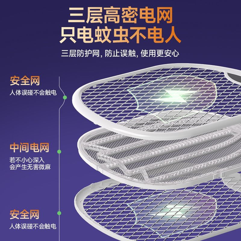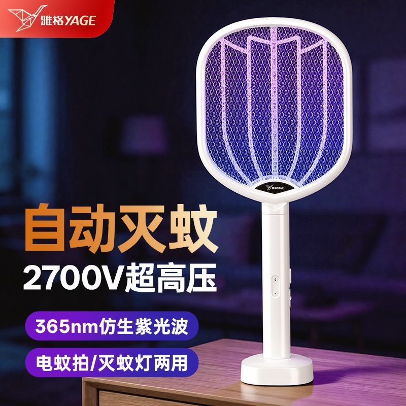 雅格电蚊拍家用可充电强力灭蚊灯锂电蚊子拍苍蝇拍多功能灭蚊神器