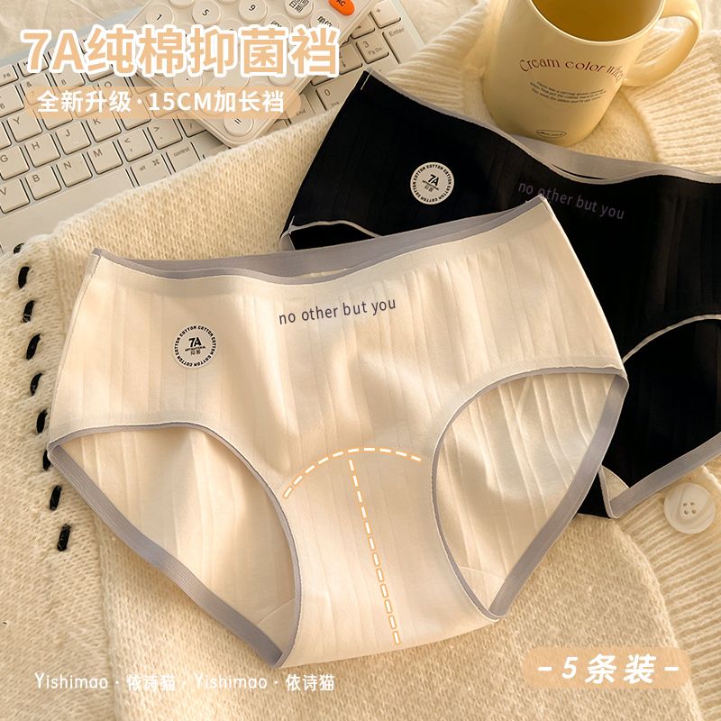 5条欧若风7A加长棉裆中腰无痕内裤女款盒装包臀三角短裤头
