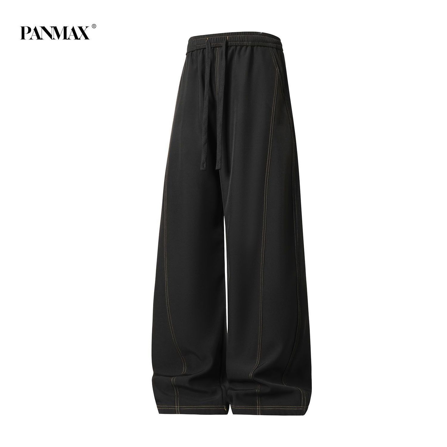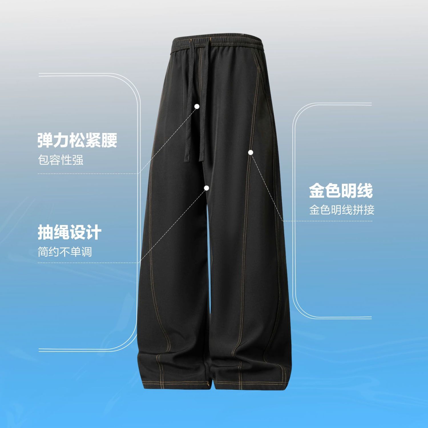 2026春夏黑色冰丝裤子男宽松直筒抽绳松紧腰学生党百搭阔腿休闲裤