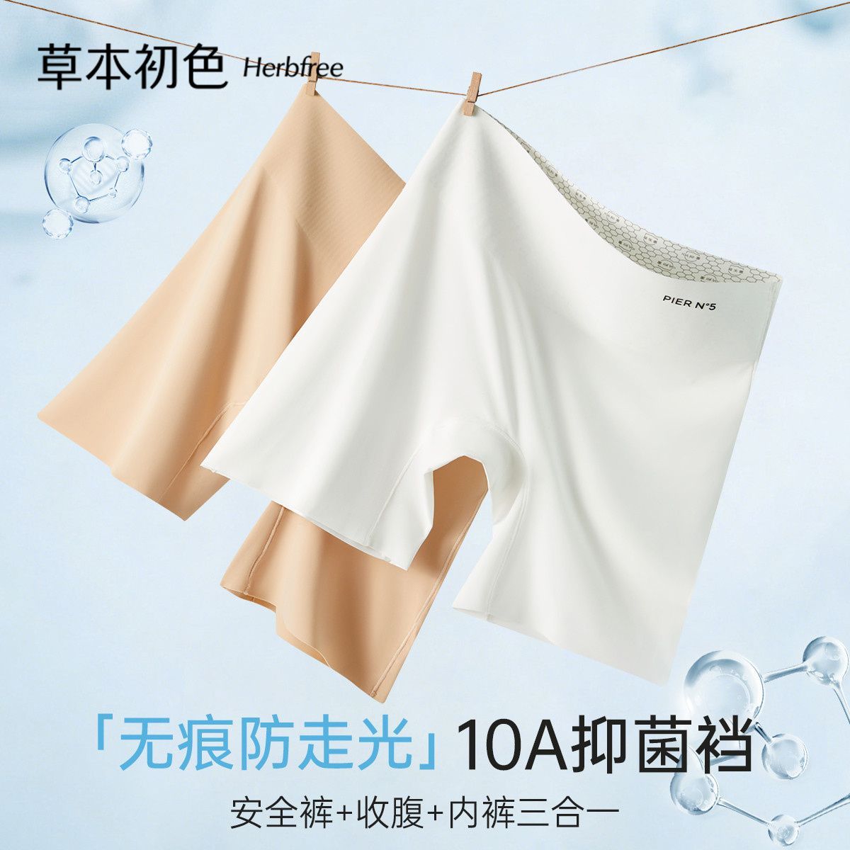 草本初色【高腰提臀10A抑菌】粉底液女士三合一防走光安全内裤2条
