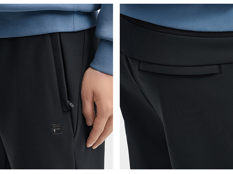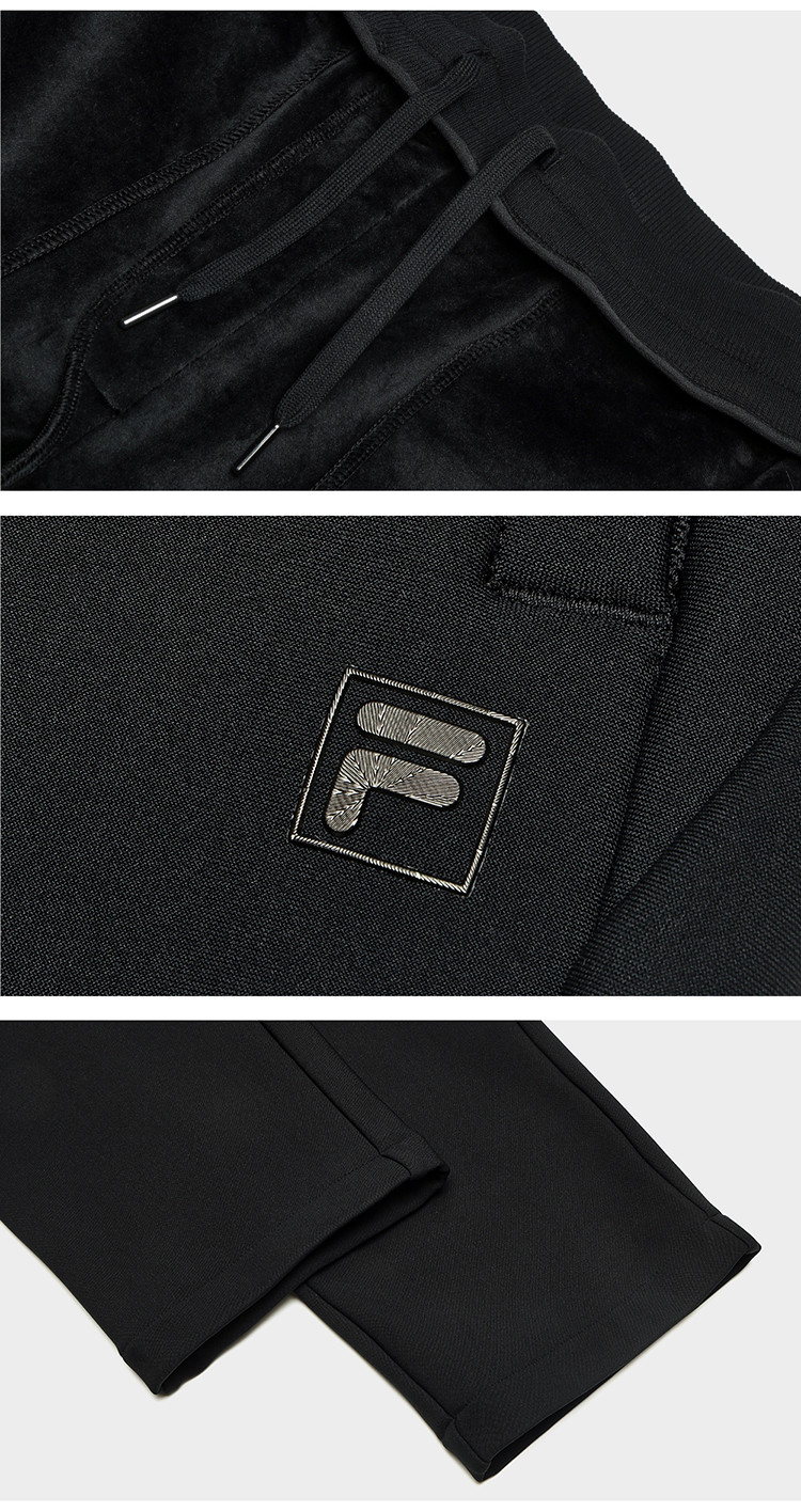 FILA 【抓绒】男装休闲裤男士时尚舒适基础高弹耐磨保暖直口针织长裤